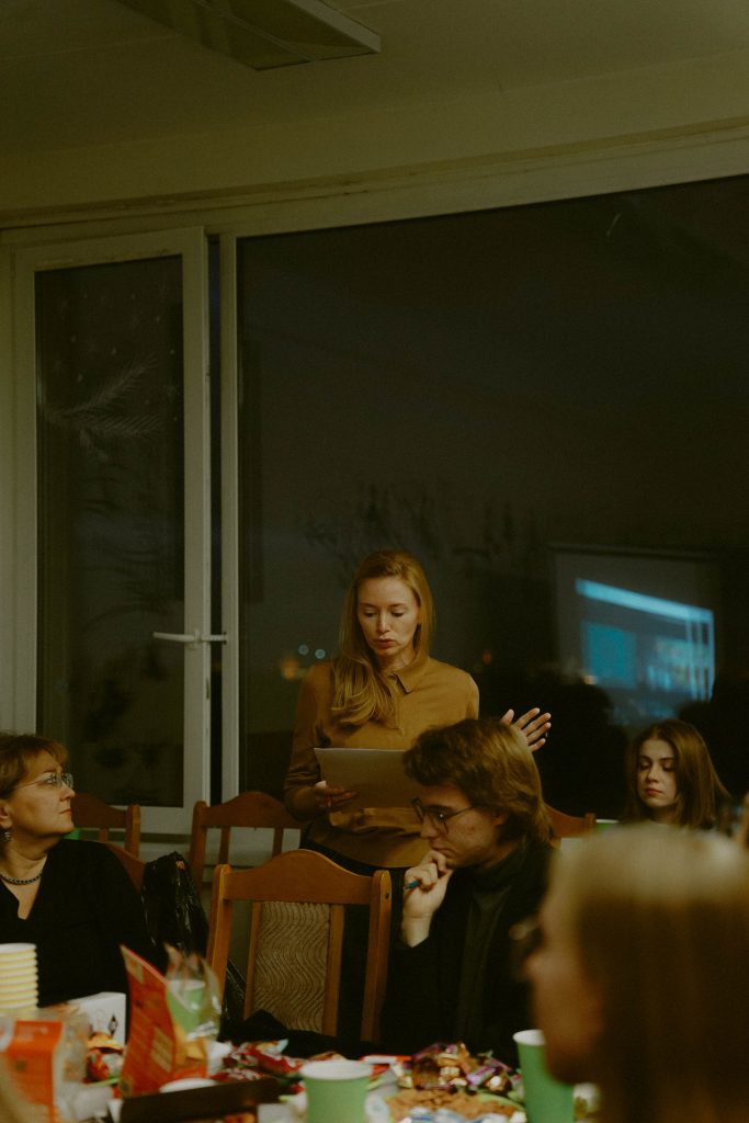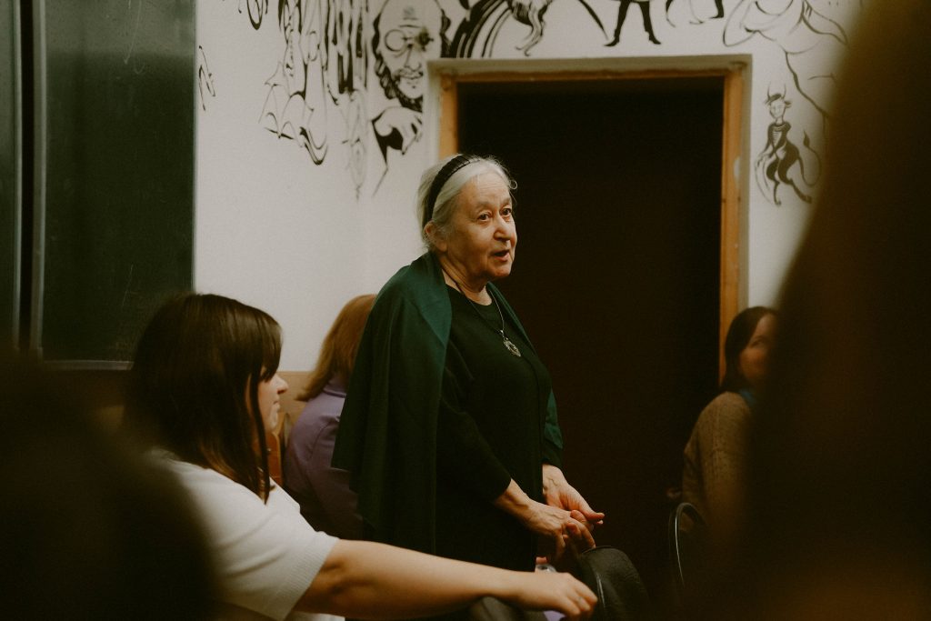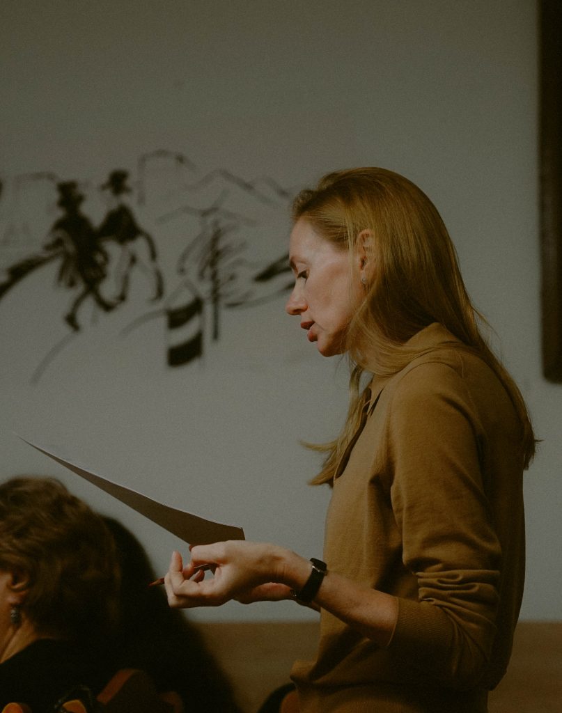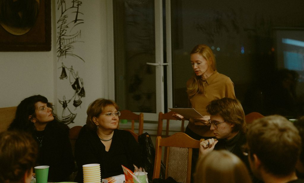 «Хозяйкой вечера» выступила Елена Викторовна Жуйкова, преподаватель МГУ и ВГИКа.