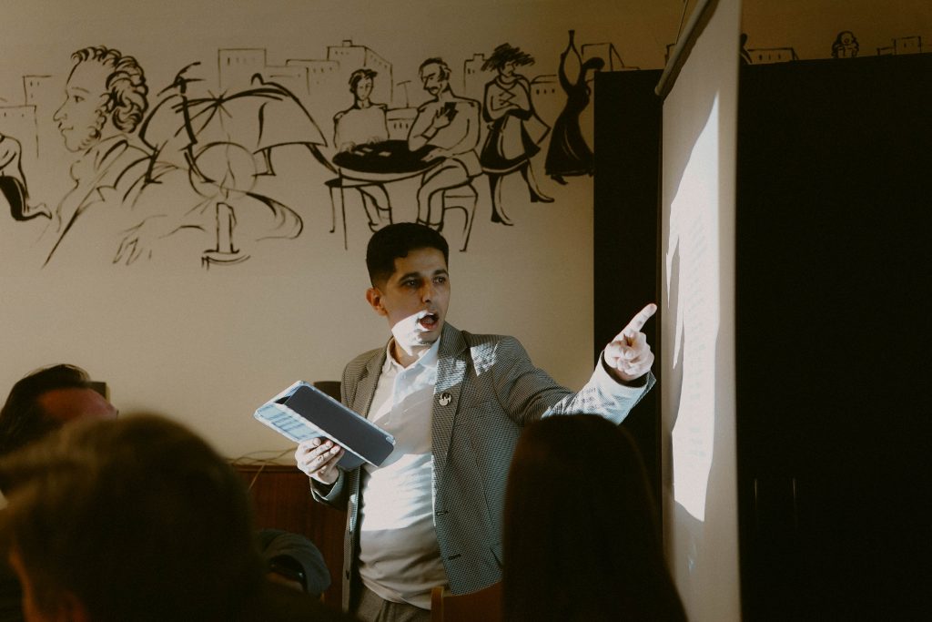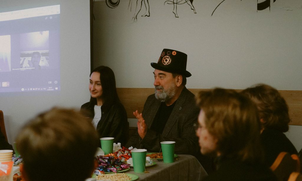 12 февраля 2024 г. кафедра провела встречу с писателем, режиссером, актером, доктором физико-математических наук Романом Валерьевичем Михайловым. Начавшись в поточной аудитории П-11, общение продолжилось на кафедре. Благодарные слушатели никак не хотели отпускать автора неповторимых, уникальных в своем роде текстов, яркого драматурга и главный голос современного независимого кино, обсуждая с ним, помимо литературы, эзотерику, визионерские опыты, кинематограф, карточные игры, искусственные языки и проблемы высшей математики. Общение получилось очень насыщенным и продлилось целых семь часов. Расходились слушатели неохотно и под глубочайшим впечатлением, получив от гостя заряд энергии и вдохновения.
