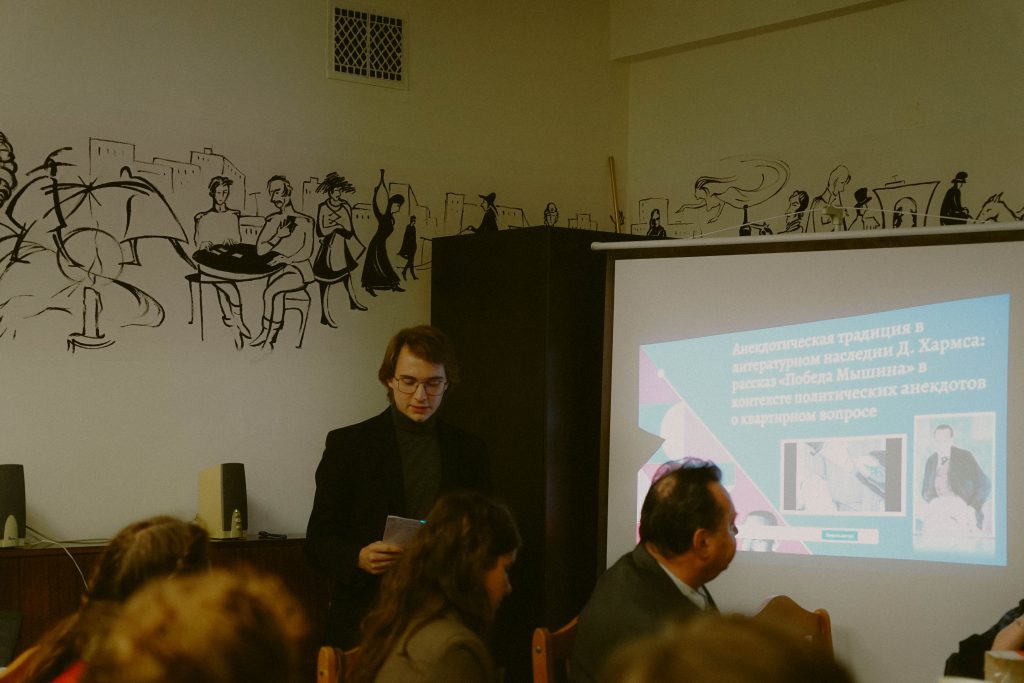 25 сентября 2025 г. кафедра провела неформальный круглый стол, посвященный разным аспектам изучения творчества ОБЭРИУтов (к 120-летию Д. Хармса). Выступления затронули наследие Хармса и Введенского, особое внимание докладчики-хармсоведы уделили философии Логоса, реализации концепта «лес» и рассмотрению рассказов в русле анекдотической традиции; также было подробно проанализировано диахроническое развитие образа Чижа в русской литературе, обсуждалась категория бессмыслицы в произведении А. Введенского «Некоторое количество разговоров». Яркие выступления как нельзя лучше соответствовали игровой поэтике русских абсурдистов.