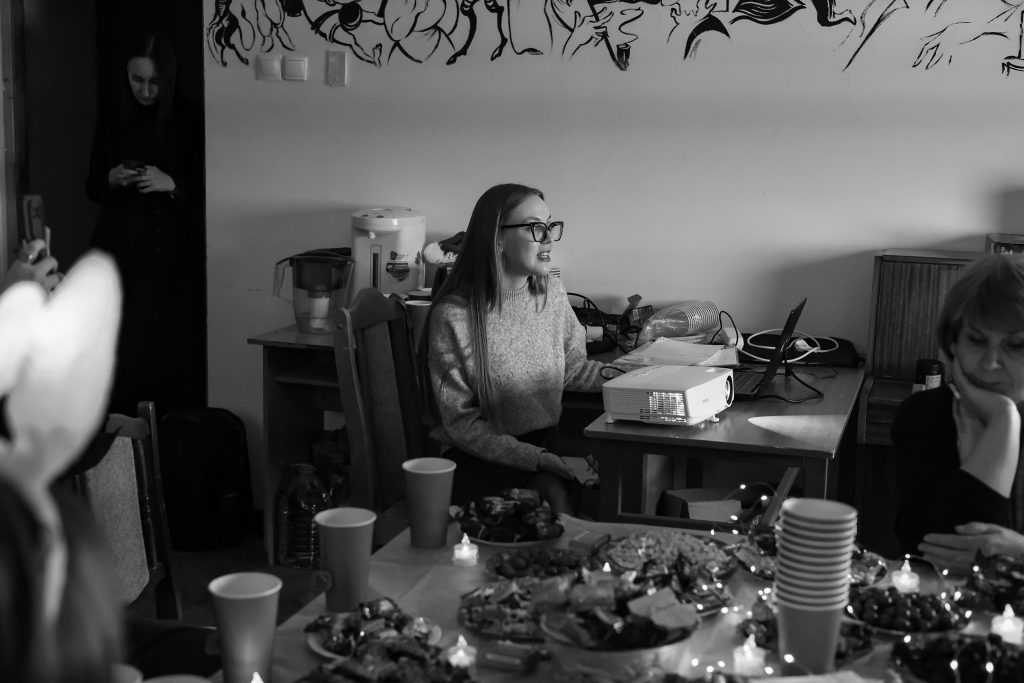 15 апреля 2024 г. преподаватель Е.В. Жуйкова совместно с коллективом сотрудников, аспирантов и магистрантов кафедры провела вечер в стиле «Бродячей собаки». Программа получилась необыкновенно яркой и насыщенной; наряду с докладами, были представлены пантомима, танцы, театр теней, интермедии и многое другое. Гости с организаторами совместно исполнили гимн «Бродячей собаки», полаяли и оставили памятные надписи в свиной книге, единогласно придя к решению о необходимости регулярных собраний подобного рода.