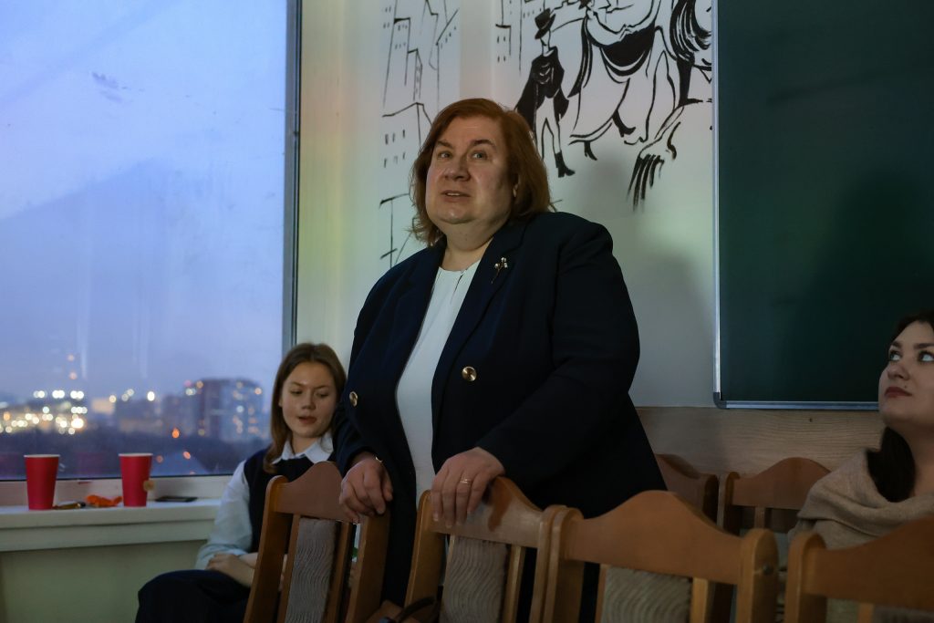 «Хозяйкой вечера» выступила Елена Викторовна Жуйкова, преподаватель МГУ и ВГИКа.