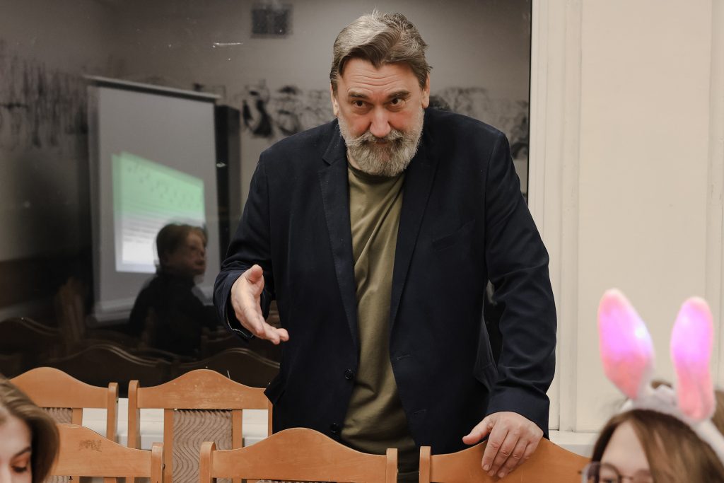 12 февраля 2024 г. кафедра провела встречу с писателем, режиссером, актером, доктором физико-математических наук Романом Валерьевичем Михайловым. Начавшись в поточной аудитории П-11, общение продолжилось на кафедре. Благодарные слушатели никак не хотели отпускать автора неповторимых, уникальных в своем роде текстов, яркого драматурга и главный голос современного независимого кино, обсуждая с ним, помимо литературы, эзотерику, визионерские опыты, кинематограф, карточные игры, искусственные языки и проблемы высшей математики. Общение получилось очень насыщенным и продлилось целых семь часов. Расходились слушатели неохотно и под глубочайшим впечатлением, получив от гостя заряд энергии и вдохновения.