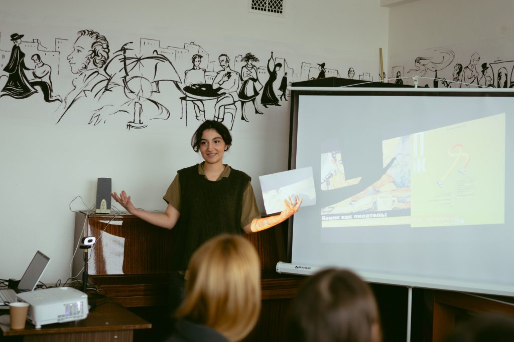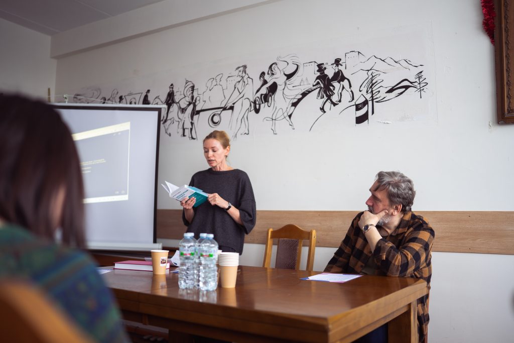 20 февраля кафедра провела Двенадцатое заседание постоянно действующего круглого стола, посвященного литературным новинкам последних лет. Программа получилась насыщенной и охватила не только художественные тексты («Пчела Майя и Чудесное превращение Андрея Ивановича» Ф. Гримберг), но и актуальные исследования (М.М. Голубков, «Литературный процесс: от реализма к модернизму»; «Женщина-автор: писательские стратегии и практики в эпоху модерна»), а также дала повод поговорить о новых жанрах (визуальная новелла) и иных гранях текущего литературно-критического процесса (журналы «Правила жизни» и «Во-вторых»).