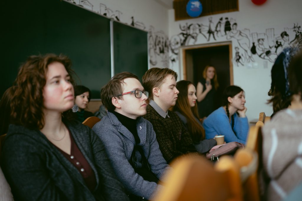 Пушкинская гостиная была переполнена студентами, магистрантами, аспирантами, некоторые из них занимаются связью литературы и кинематографа, поэтому с интересом слушали доклады коллег-киноведов, где говорилось о новых подходах и языке анализа кинотекста.